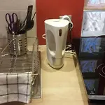 Naast koffie- en theevoorzieningen is dit appartement uitgerust met een complete keuken met een magnetron, een waterkoker en een koelkast.